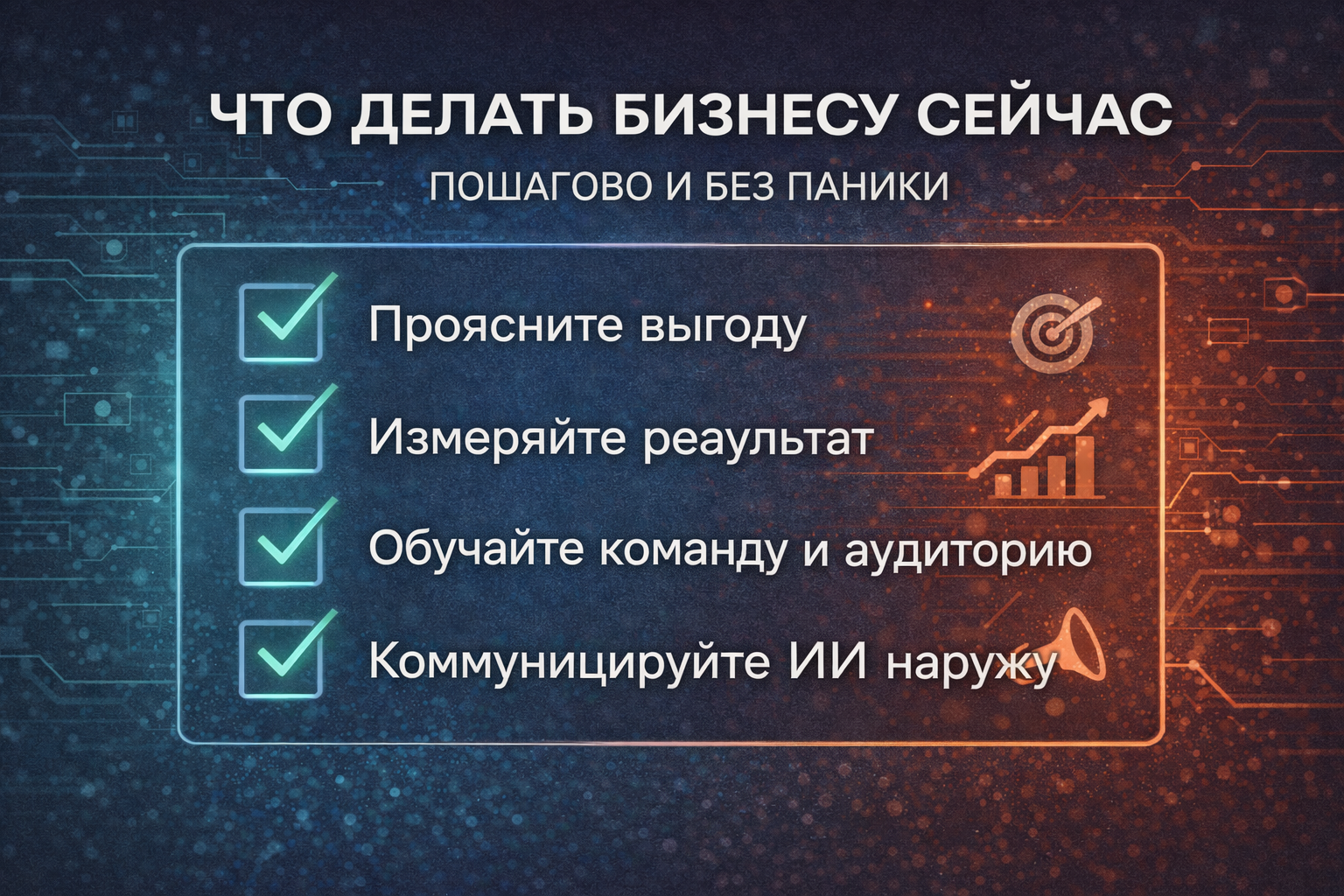 Для бизнеса это сигнал: коммуникация важна не меньше технологии. Если ты внедряешь ИИ-решения, стоит объяснять аудитории как и для чего ты ими пользуешься, а не просто «ставить на поток».